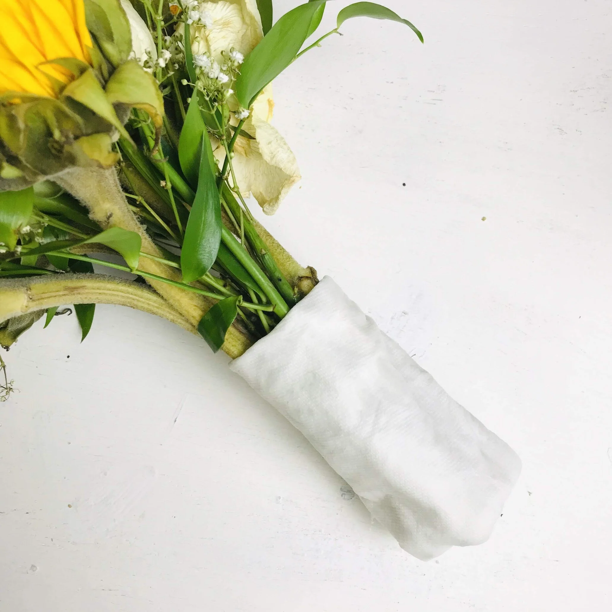 Wrap a damp paper towel around the bottom of the stems, covering completely.